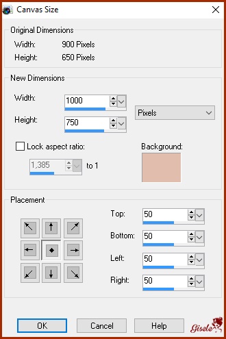 07- Select > all. Image > Canvas size > 1000 x 750 - com a cor #e1bdae em Background: